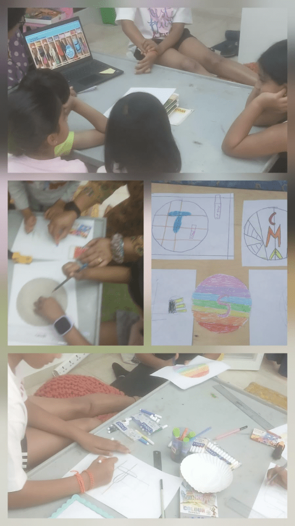 During the class, children learned that math is connected to music and the world around them. They understood that longer and shorter strings make different sounds, with shorter strings making higher sounds and longer strings making lower sounds. Through number patterns and clapping, they learned that numbers can form patterns just like musical rhythms. While exploring shapes, they understood that shapes have different sides and help us measure and understand size and length. They also learned that four triangles can be joined together to make a square. By creating their own sound patterns, children discovered that numbers, shapes, and music are all connected, making math fun and meaningful. Neev,Mayra & Havishka: 7.5 years old