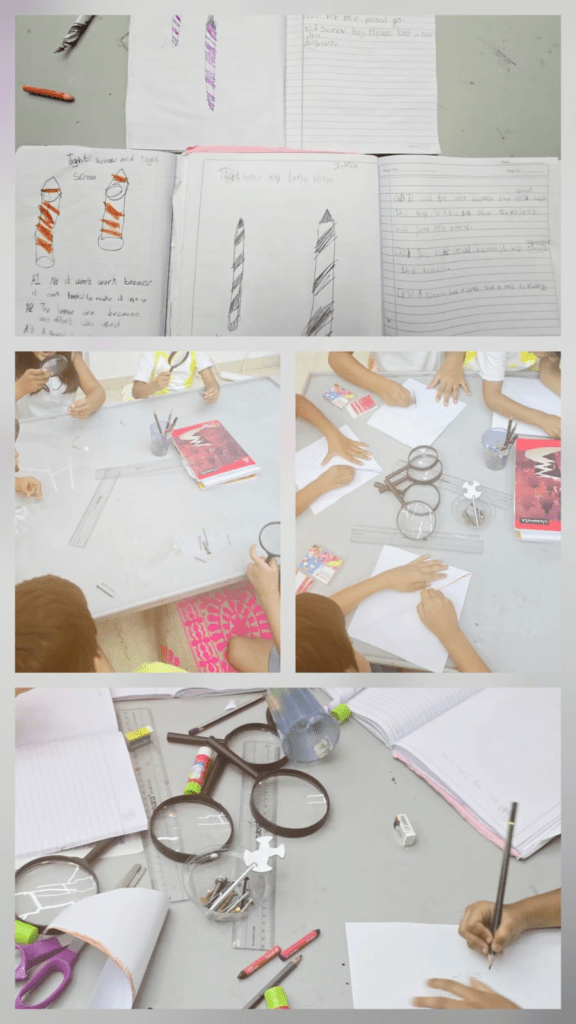 The children were actively involved, shared their ideas confidently, and showed a good understanding of how screws work.