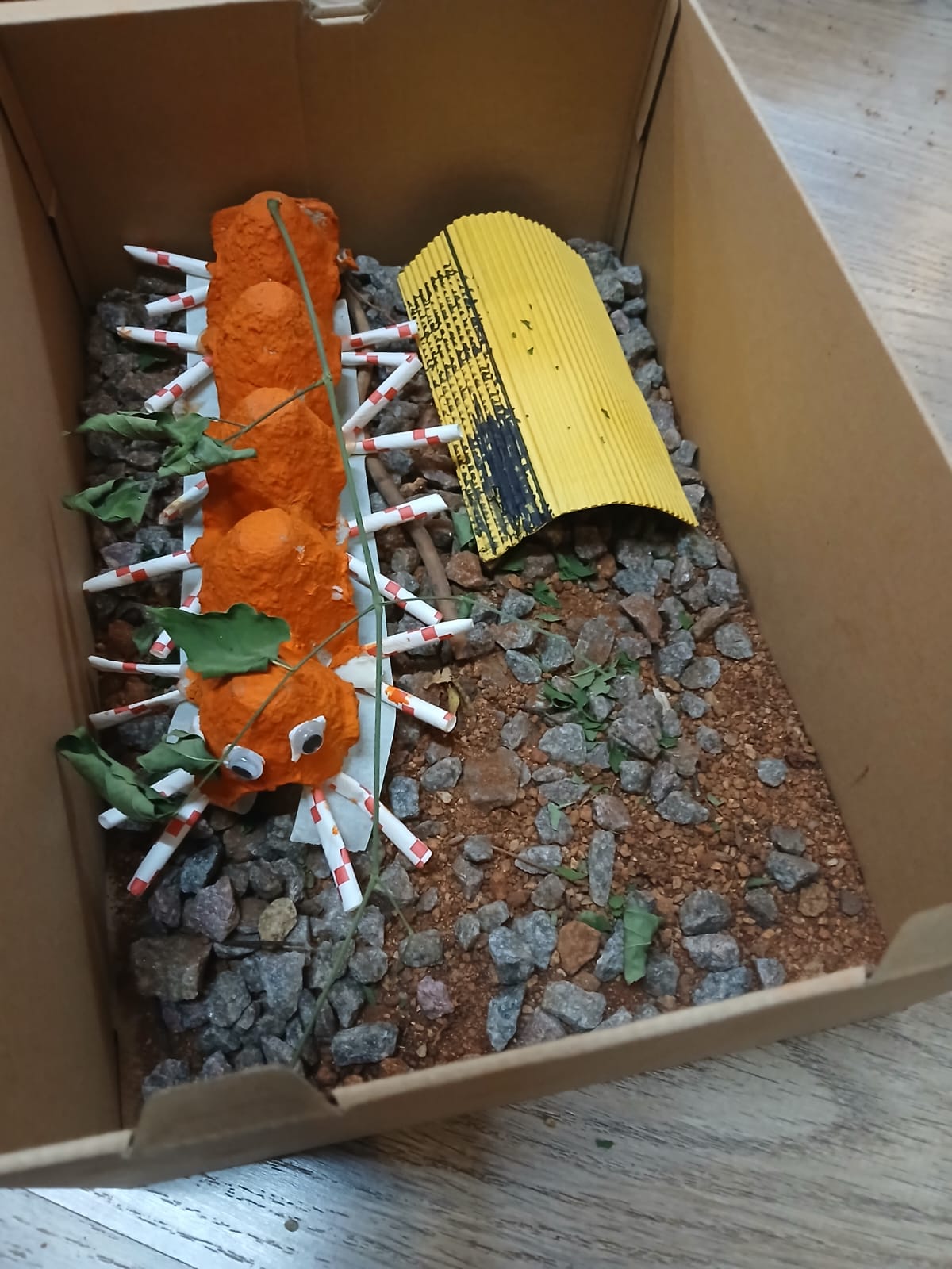 Through the millipede habitat art project, the children learned about the natural environment of millipedes, including the need for damp, dark spaces with decaying leaves and soil. They also gained practical experience in using recycled and natural materials to create an appropriate habitat, understanding how various elements contribute to the millipede’s survival.